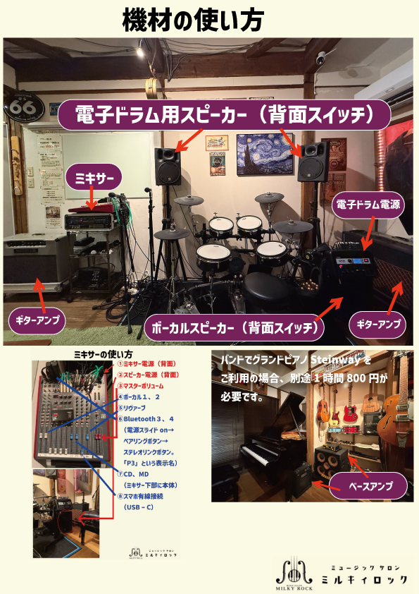 他のスタジオにはない練習環境を整えております。